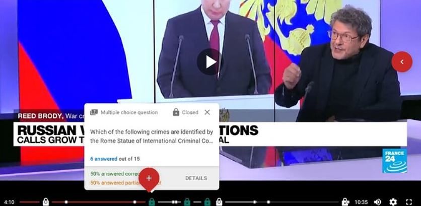 One of value added activities by FeedbackFruits is interactive video (for further explanation of the tool, click here). It can be interview (as in the case above), documentary, or part of the class recording. The students are asked to answer structured questions as in the image above concerning Rome Statue. The question connects to the class content and content of the interview. The students cannot proceed further until they answer the questions. They are also asked to generate discussion threads and responses by addressing any issues mentioned during the interview. The ability to stop the video to address an issue connected the content of the classroom or selected reading, allows students to focus on important elements related to the topic at hand and reinforce the knowledge developed during the class.