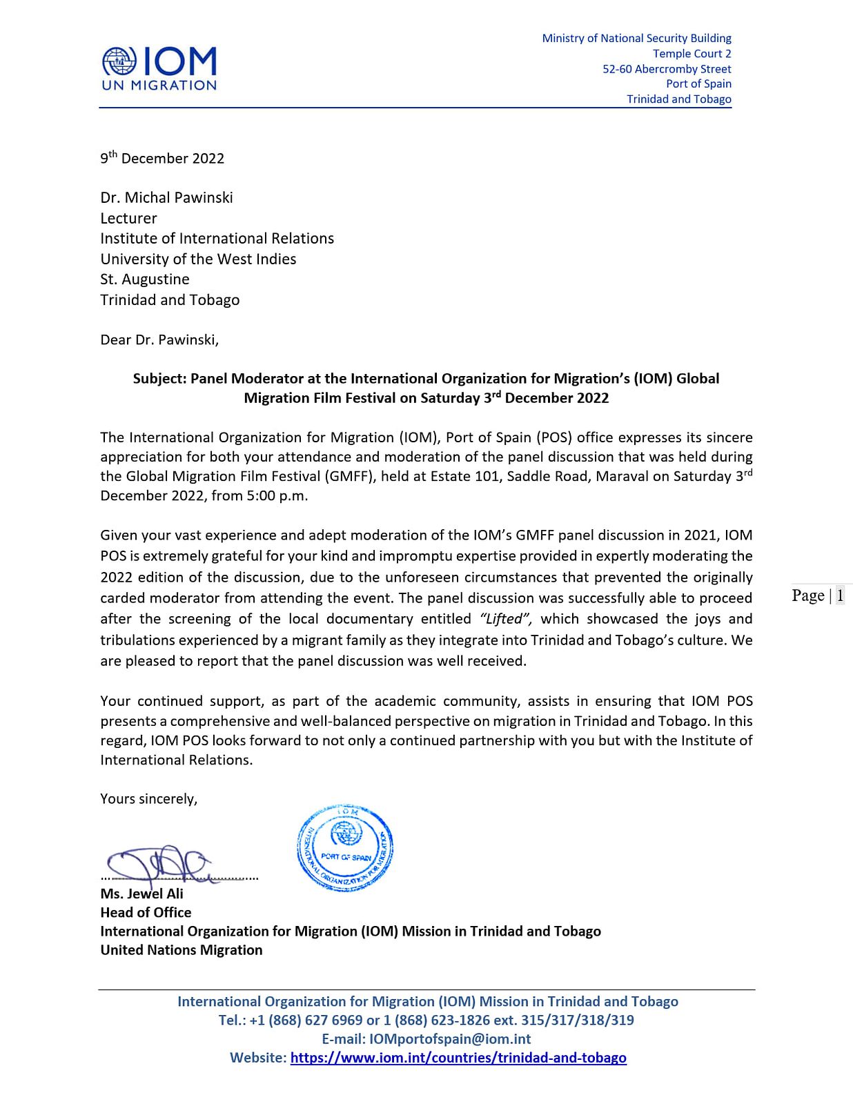 International Organization for Migration, Global Migration Film Festival, Trinidad and Tobago, December 3rd, 2022