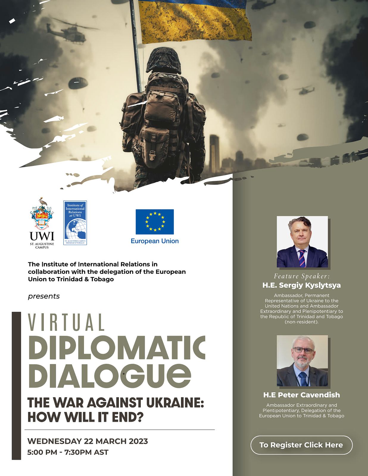 Virtual Diplomatic Dialogue: The War Against Ukraine: How Will It End? Institute of International Relations and Delegation of European Union to Trinidad and Tobago, March 23rd, 2023